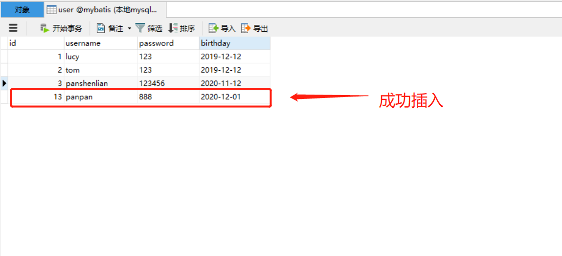 <insert id="insertUser" parameterType="com.panshenlian.pojo.User" >