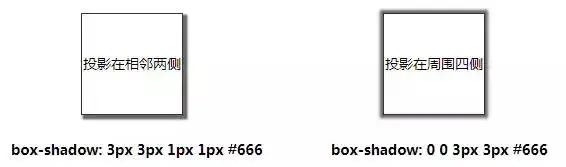 先说单侧投影,关于 box-shadow,大部分时候,我们使用它都是用来生成一个两侧的投影,或者一个四侧的投影。如下: