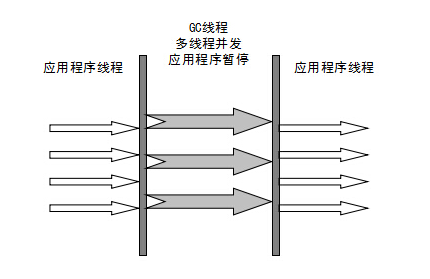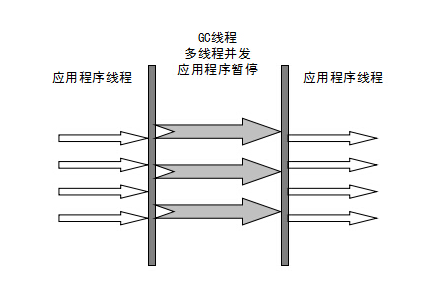 并行(Parallel) :指多条垃圾收集线程并行工作,但此时用户线程仍然处于等待状态。 -