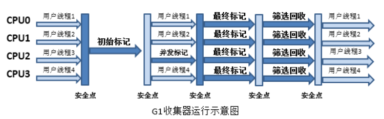 重新标记: 重新标记阶段就是为了修正并发标记期间因为用户程序继续运行而导致标记产生变动的那一部分对象的标记记录,这个阶段的停顿时间一般会比初始标记阶段的时间稍长,远远比并发标记阶段时间短 -