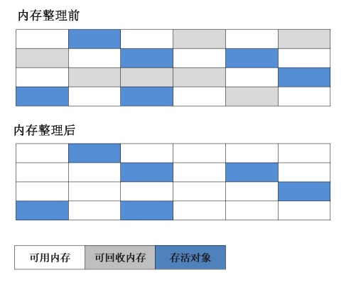 空间问题:标记清除之后会产生大量不连续的内存碎片,空间碎片太多可能会导致以后在程序运行过程中需要分配较大对象时,无法找到足够的连续内存而不得不提前触发另一次垃圾收集动作。