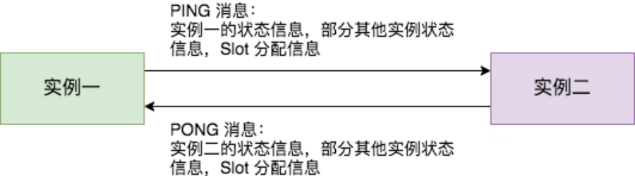 一是,每个实例之间会按照一定的频率,从集群中随机挑选一些实例,把 PING 消息发送给挑选出来的实例,用来检测这些实例是否在线,并交换彼此的状态信息。PING 消息中封装了发送消息的实例自身的状态信息、部分其它实例的状态信息,以及 Slot 映射表。 -