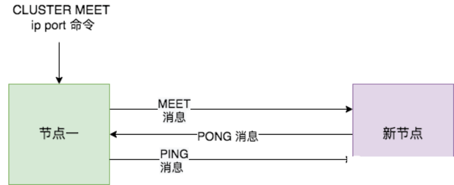 MEET 操作成功之后,节点一会通过稍早时讲的定时 PING 机制将新节点的信息发送给集群中的其他节点,让其他节点也与新节点进行握手,最终,经过一段时间后,新节点会被集群中的所有节点认识。
