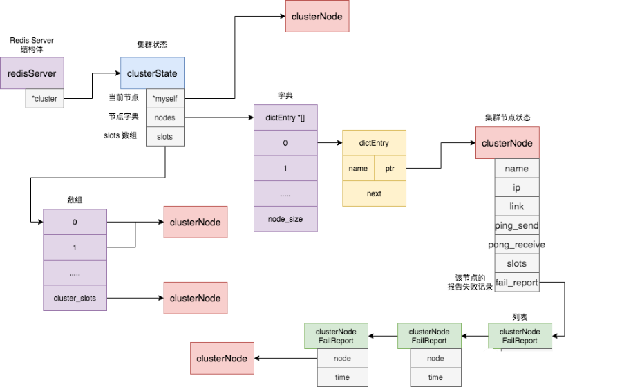 首先,我们先来讲解一下其中涉及的数据结构,也就是上文提到的 ClusterNode 等结构。