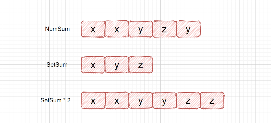 上面我们的 SetSum * 2 - NumSum = z 也就是我们所求的值, 是不是感觉很简单呀。
