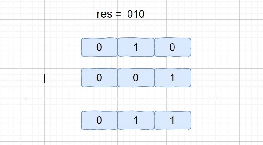 这个公式的作用就是将我们移位后的 res 的最后一位 0 变为 1。这个 1 也就代表着我们只出现一次元素的某一位。