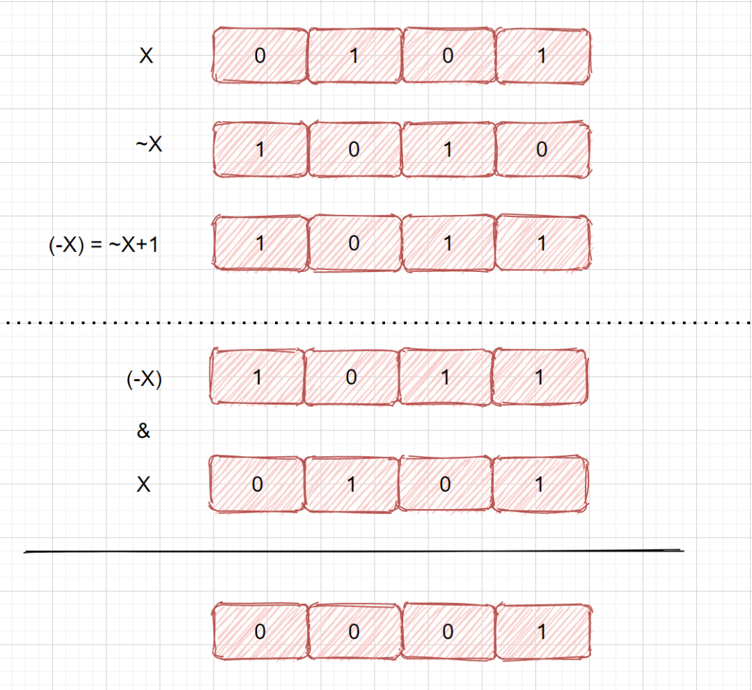 为什么要这么做呢?在第二题提到,我们可以根据 a & 1 来判断 a 的最后一位为 0 还是为 1,所以我们将 101 变成 001 之后,然后数组内的元素 x & 001 即可对 x 进行分组 。同样也可以 x & 100 进行分组.