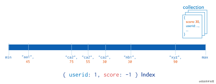 - <font color="red">所以MongoDB为了更多场景考虑,在该种情况下,放弃了复合索引,选用其他的索引,如 score 的单列索引</font>