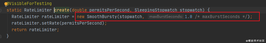 普通的令牌桶创建了一个SmoothBursty的类,这个类也就是我们实现限流的关键,具体怎么做限流的在我们的tryAcquire中: