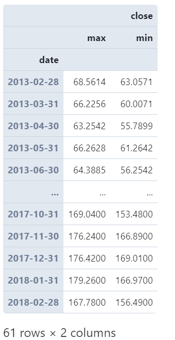我们在使用pandas分析处理时间序列数据时,经常需要对原始时间粒度下的数据,按照不同的时间粒度进行分组聚合运算,譬如基于每个交易日的股票收盘价,计算每个月的最低和最高收盘价。