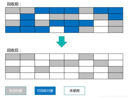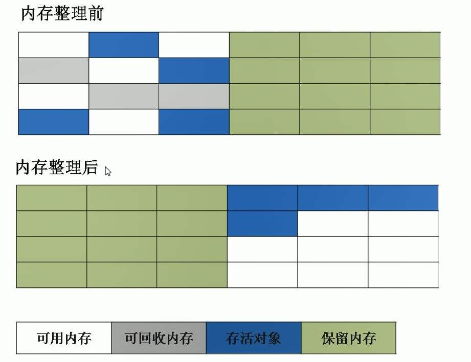 然后,将存活对象向某一端移动,如图2-3,存活对象都会向上移动,其过程可能是所有存活对象依次在一端逐个覆盖。