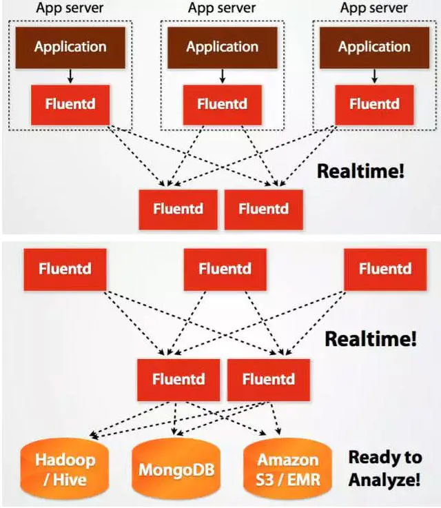 Output负责输出数据到目的地例如文件,AWS S3或者其它的Fluentd。