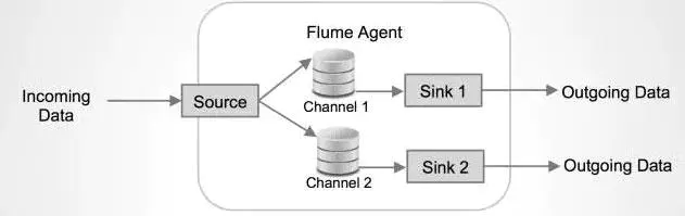 Source上的数据可以复制到不同的通道上。每一个Channel也可以连接不同数量的Sink。这样连接不同配置的Agent就可以组成一个复杂的数据收集网络。通过对agent的配置,可以组成一个路由复杂的数据传输网络。