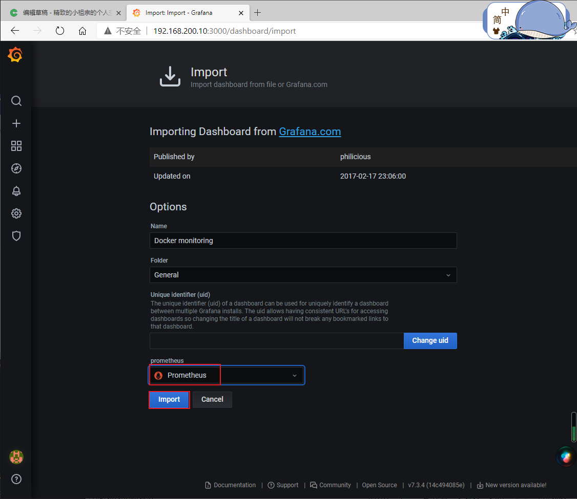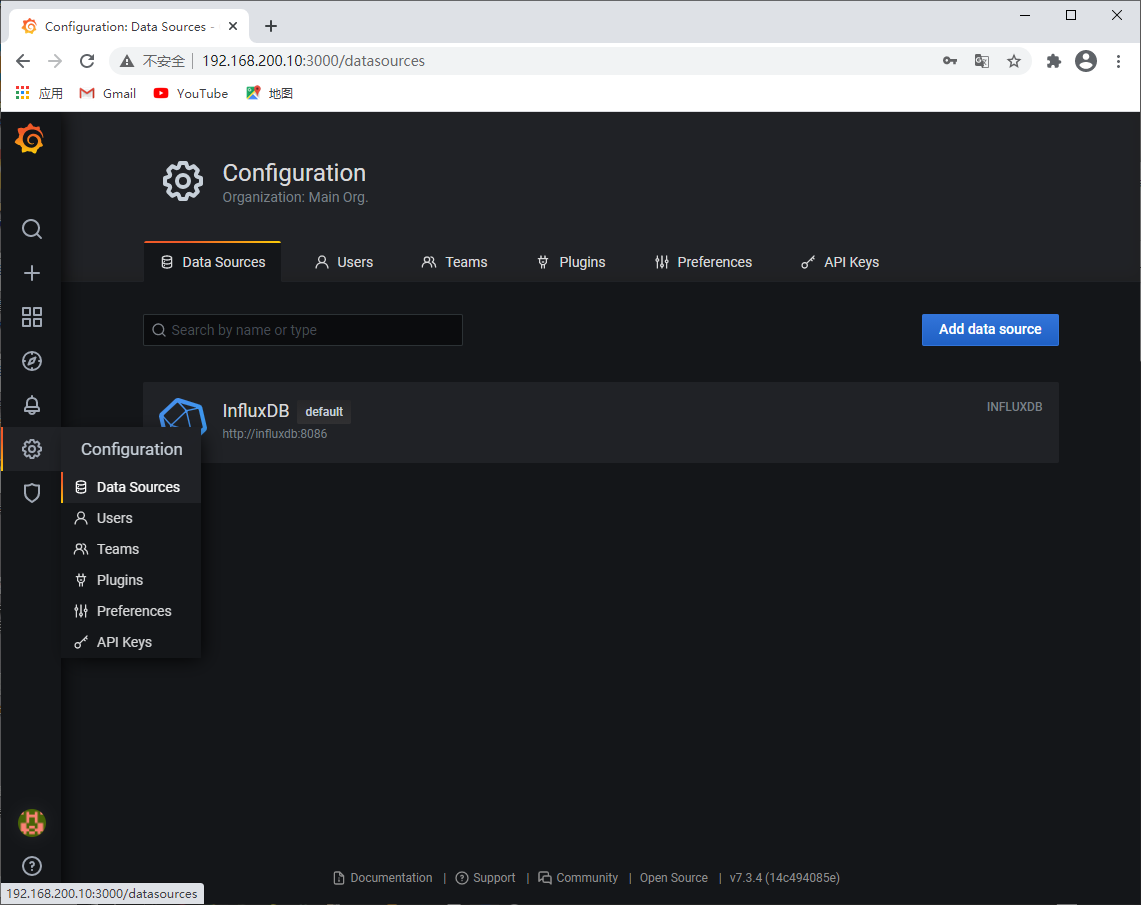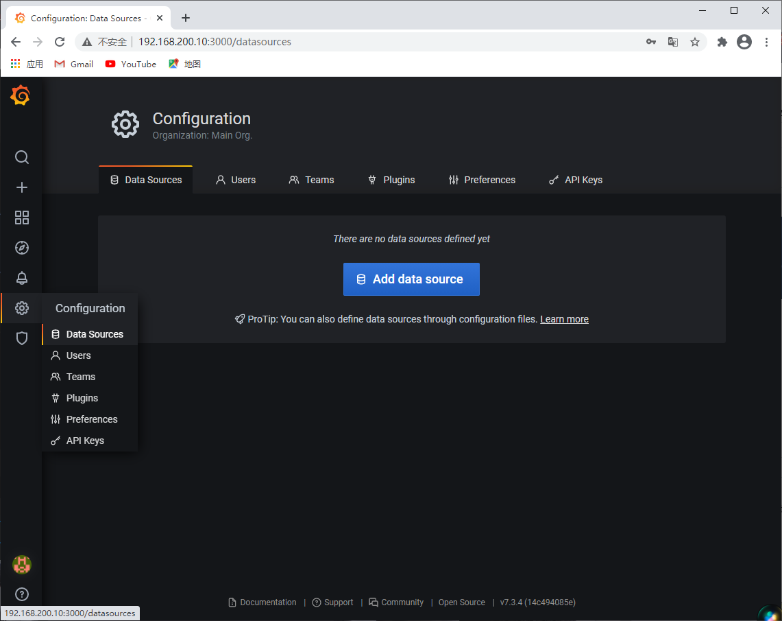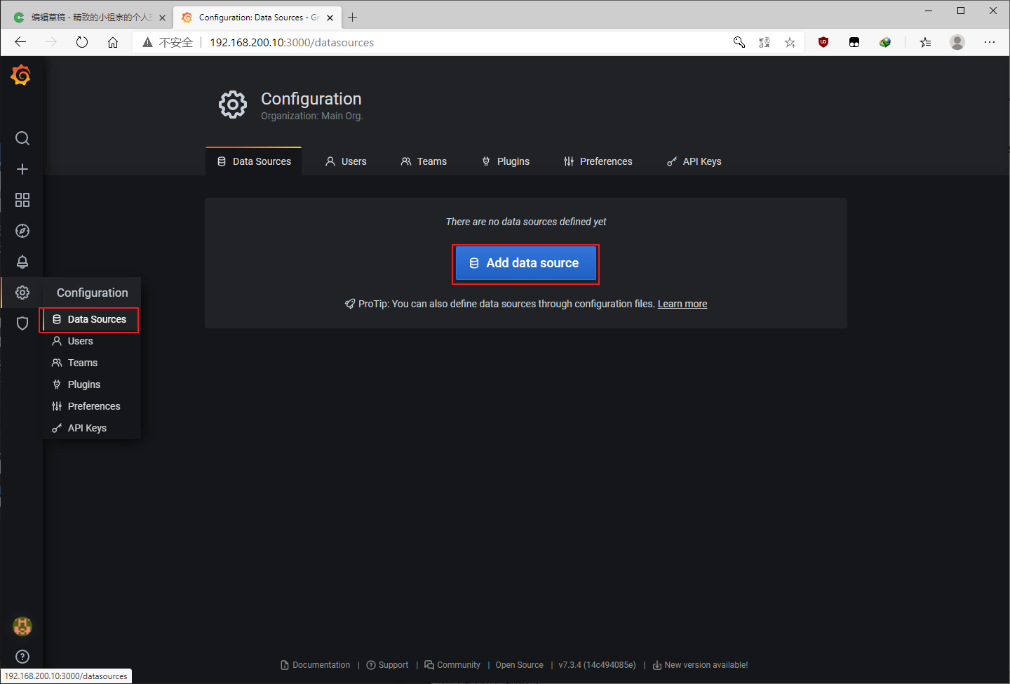 访问grafana,通过http://192.168.200.10:3000端口的方式访问,默认账号密码(admin/admin),首次陆续需要更新密码。