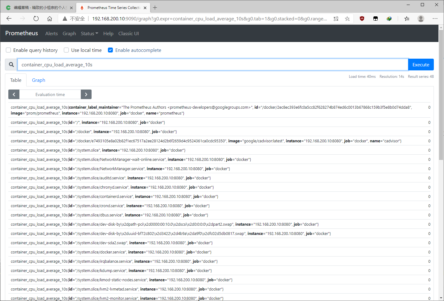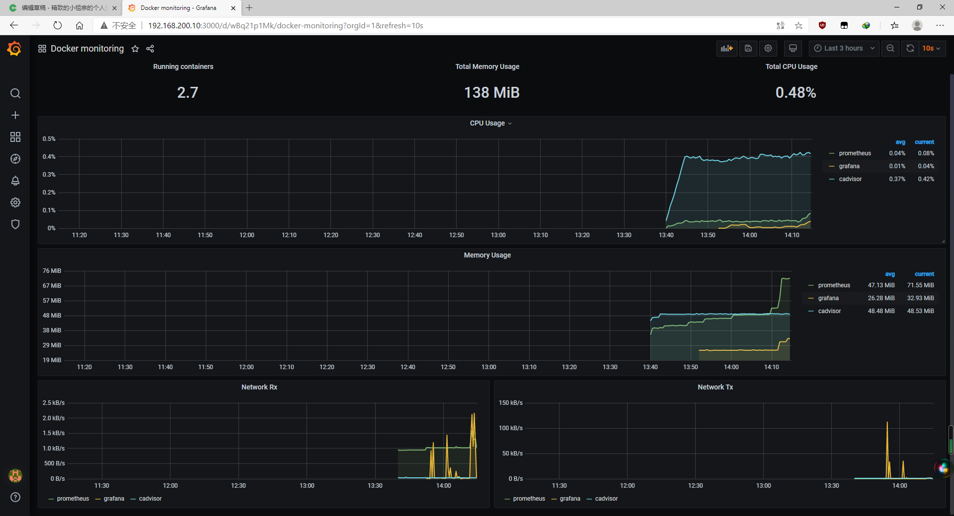 访问http://192.168.200.10 cadvisor页面看到手机到的数据
