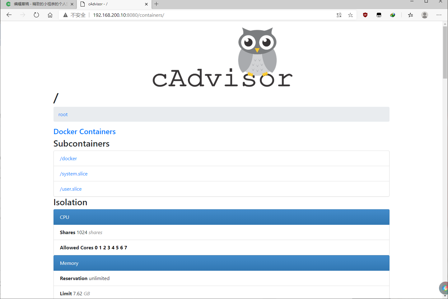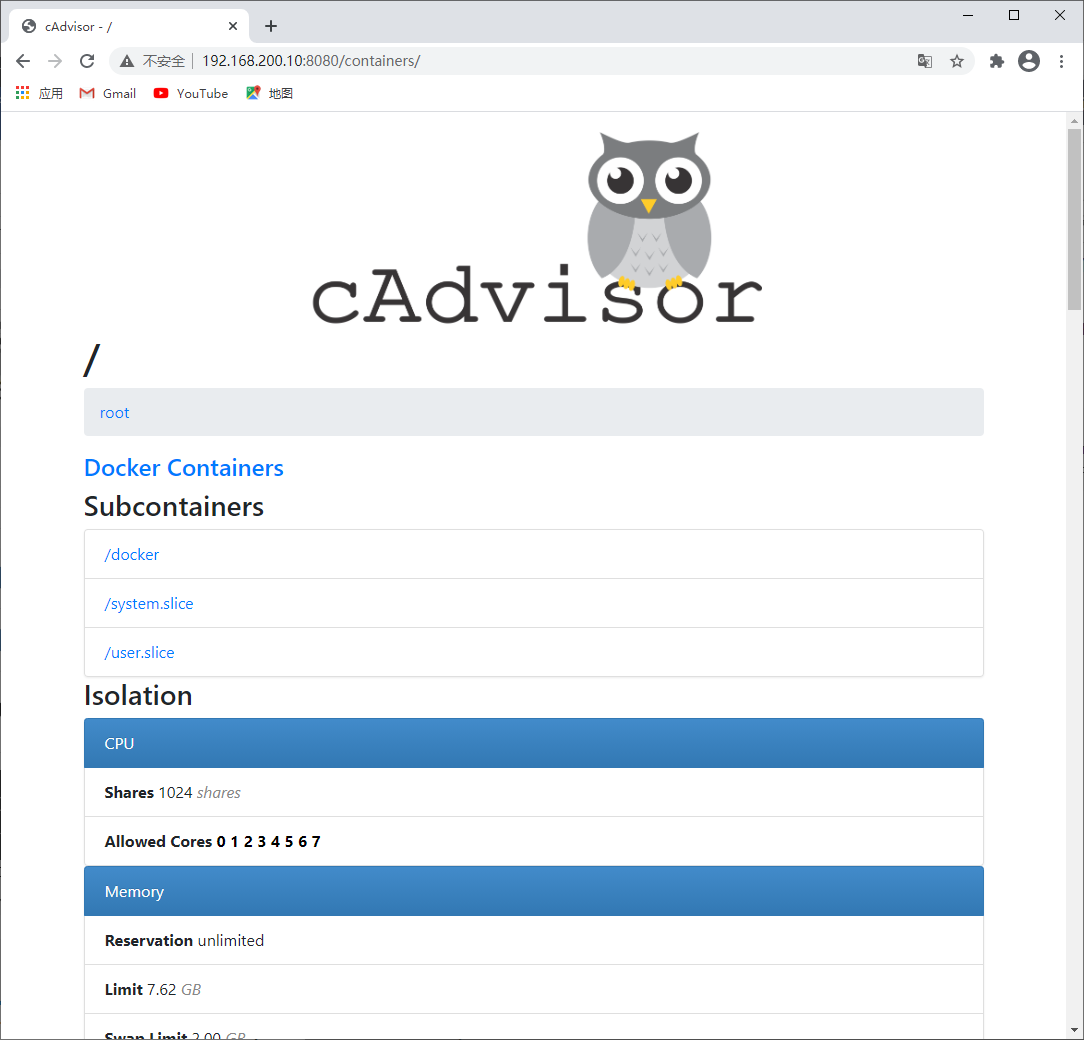 从上图可以看到,其实Cadvisor也有基础的图形界面展示功能,我么这里主要由它来做数据采集。