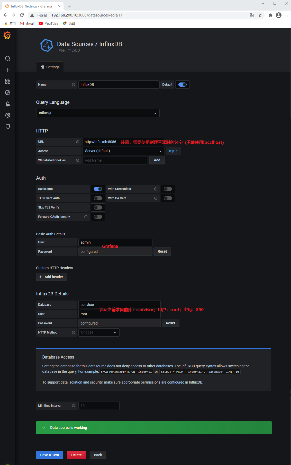 提示:InfluxDB用于数据存储,Cadvisor用户数据采集,Grafana用于数据展示。