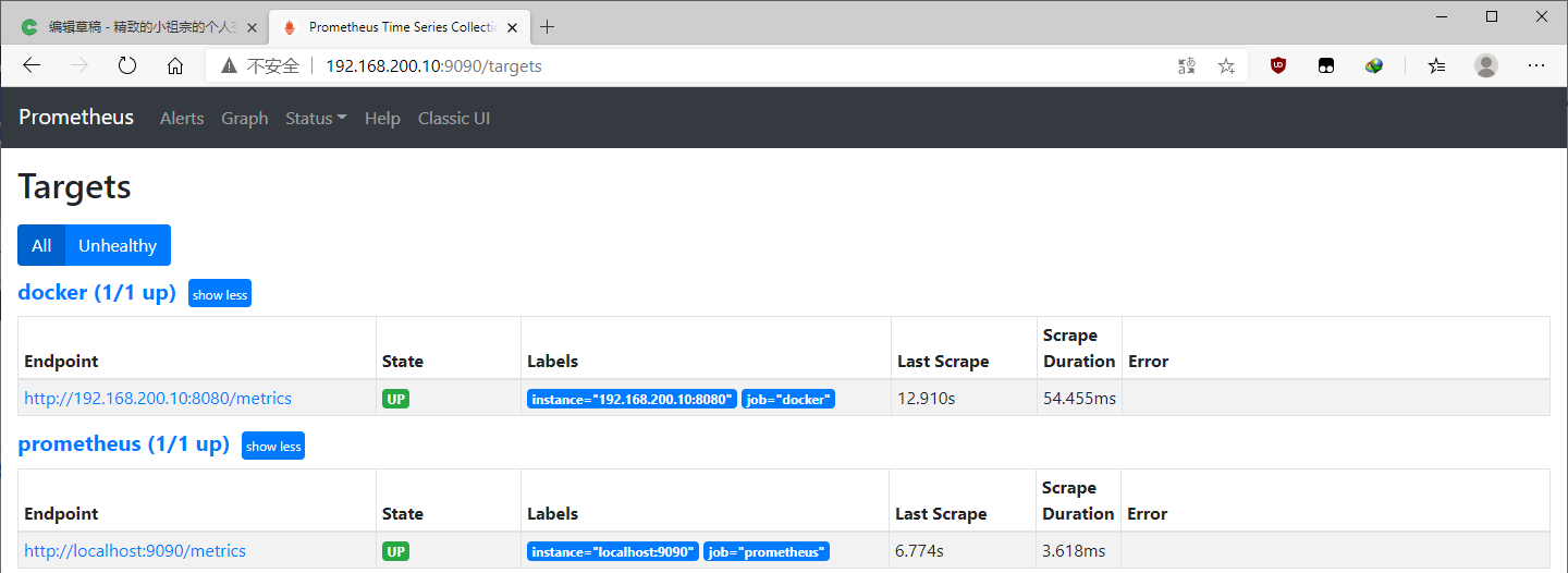 - targets: ['192.168.200.10:8080'] #填写一个或多个cadvisor的主机地址用逗号隔开
