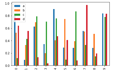 df = pd.DataFrame(np.random.rand(10, 4), columns=['a', 'b', 'c', 'd'])