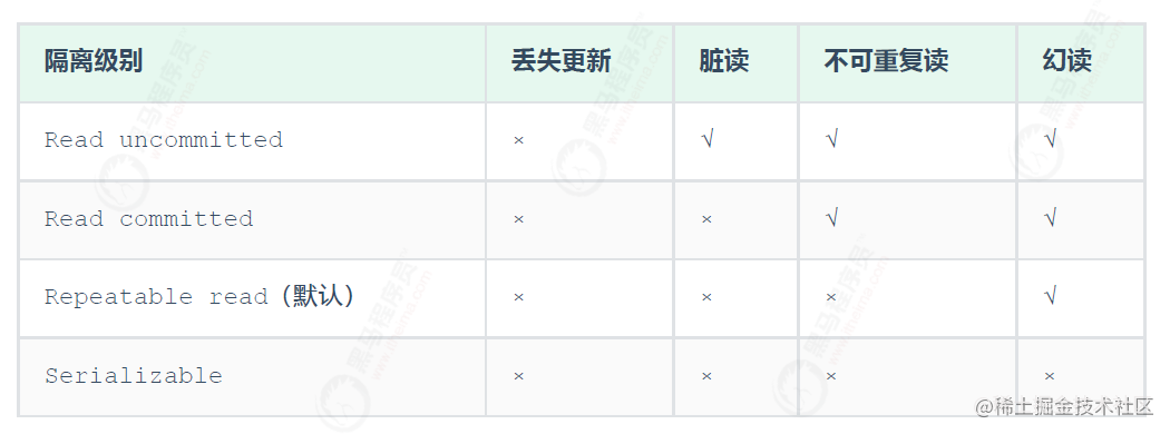数据库的隔离级别有4个,由低到高依次为Read uncommitted、Read committed、Repeatable read、Serializable,这四个级别可以逐个解决脏写、脏读、不可重复读、幻读这几类问题。