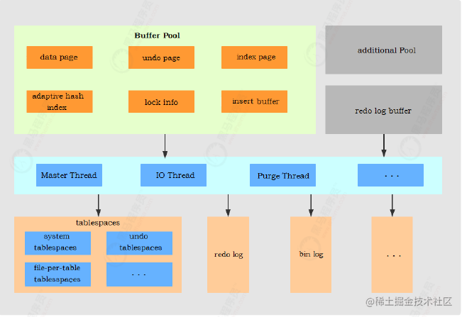 在InnoDB的缓冲池中不仅缓存了索引页和数据页,还包含了undo页、插入缓存、自适应哈希索引以及InnoDB的锁信息等等。
