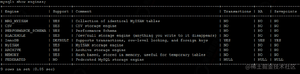 InnoDB : 是Mysql的默认存储引擎,用于事务处理应用程序,支持外键, 行锁。如果应用对事