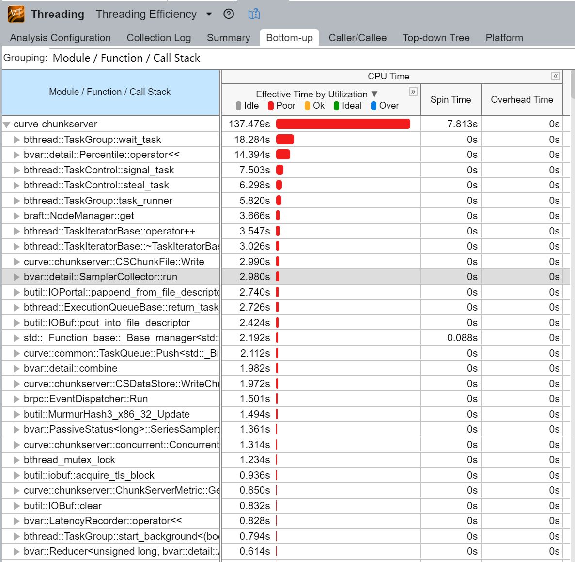 - ChunkServer自身代码耗时137秒,除此之外,其调用的外部lib库共耗时约99秒。