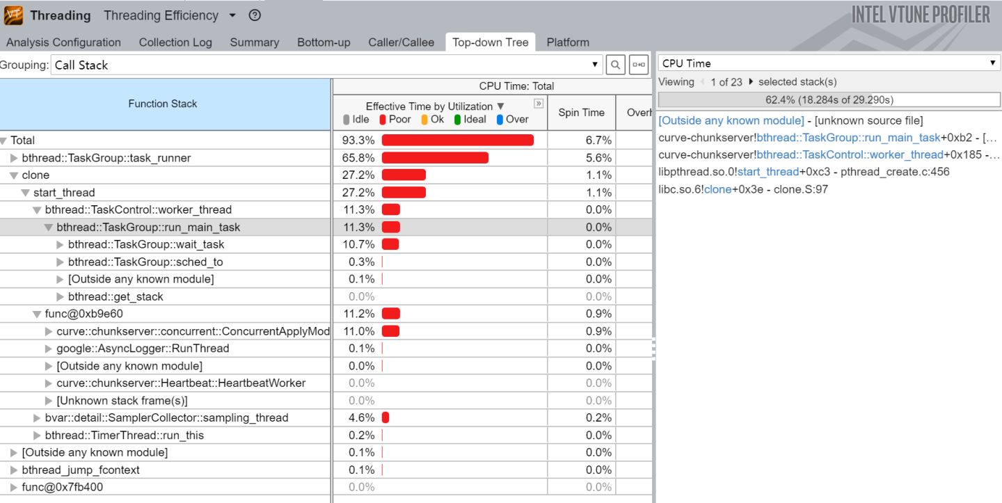 - bthread的work_thread函数CPU时间占比11.3%,偏高;