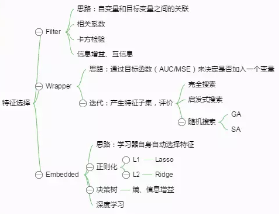 过滤法核心思路就是考察自变量和目标变量之间的关联性、相关性,设定阈值,优先选择与目标相关性高的特征。