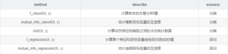 1、分类问题:卡方检验(chi2),F检验(f_classif), 互信息(mutual_info_classif)