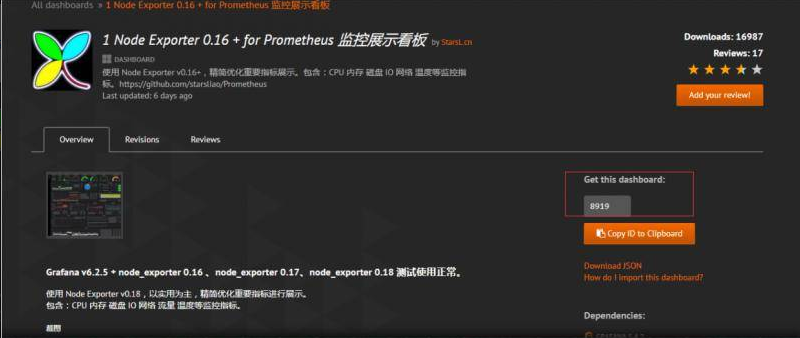 去官网寻找对应的表盘,我们选择node exporter监控看板