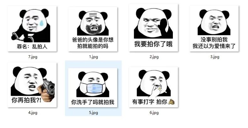 1、首先我们准备一些表情图,这里我选了沙雕熊猫头