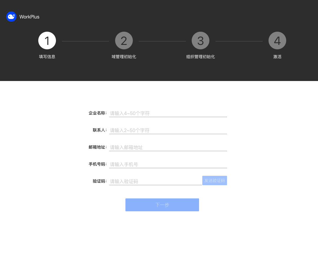 安装完成后,第一次需要初始化,初始化会向WorkPlus官方申请到一个免费的License.