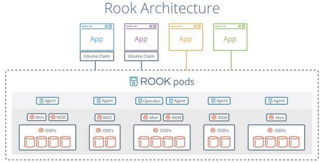 CNCF首个云原生存储项目Rook,是将文件、数据块和对象存储系统引入到Kubernetes集群,与其他正在使用存储的应用程序和服务一起无缝运行。通过这种方式,云原生集群可以在公有云和本地部署中自给自足并且具备可移植性。该项目的开发目的是使企业能够通过动态应用编排,为在本地和公有云环境中运行的分布式存储系统实现数据中心现代化。