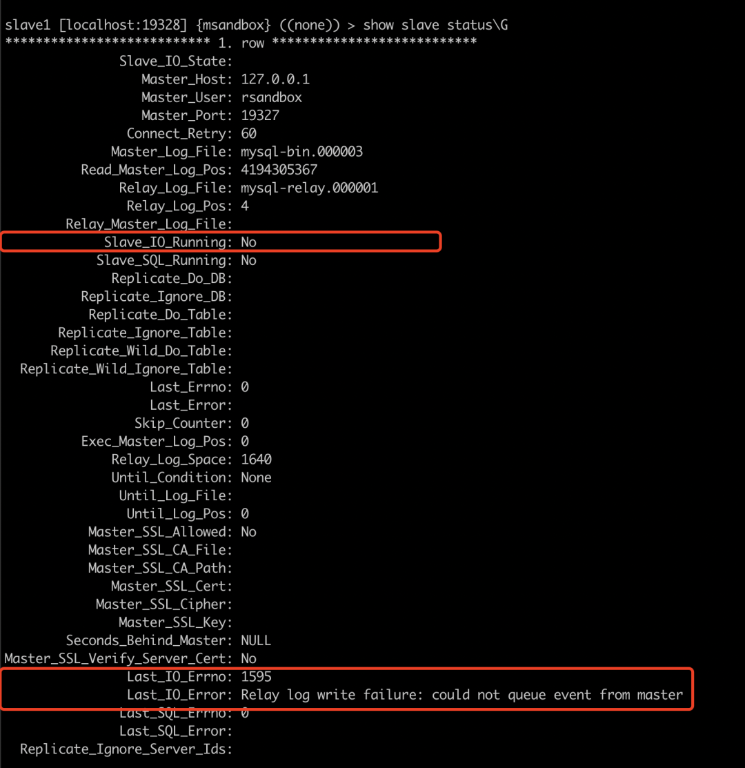 然后开始复制的 IO 线程,过十几秒,就可以看到复制报错: