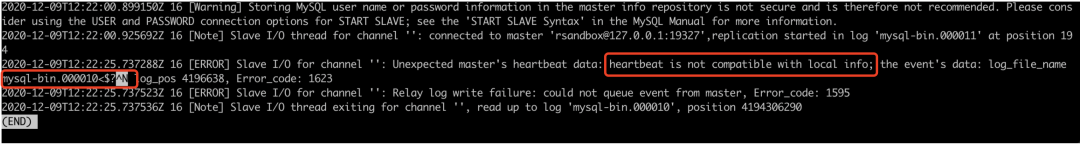 而 MySQL 的报错 heartbeat is not compatible with local info,也是在报这个问题:心跳包中的 position 不应比当前的 position 小。