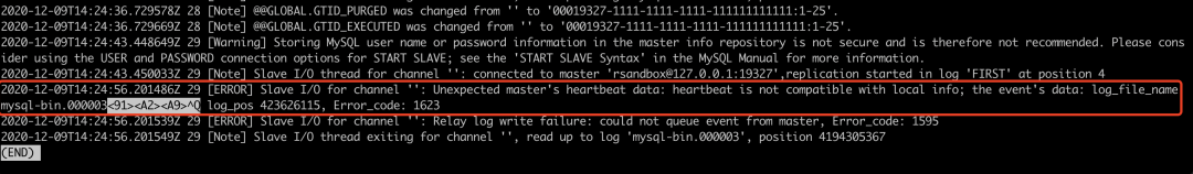 这也就导致了 binlog event 传输时,next_position 突然会变小,心跳机制会检查到这个变化,产生报错。