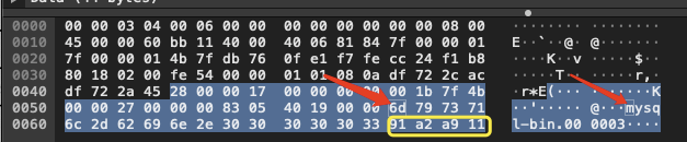 其后的一位 00,是 MySQL 的 command type(https://dev.mysql.com/doc/internals/en/command-phase.html),在此没有意义,我们将其忽略,