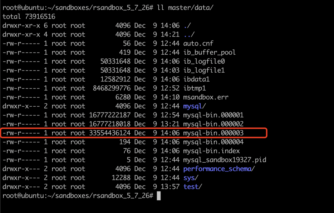这样就获得了一个超大的 binlog,一共 32G,前 16G 是一个事务,后 16G 是另一个事务。