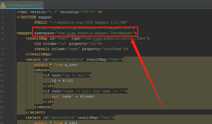 namespace="com.tian.mybatis.mappers.UserMapper"