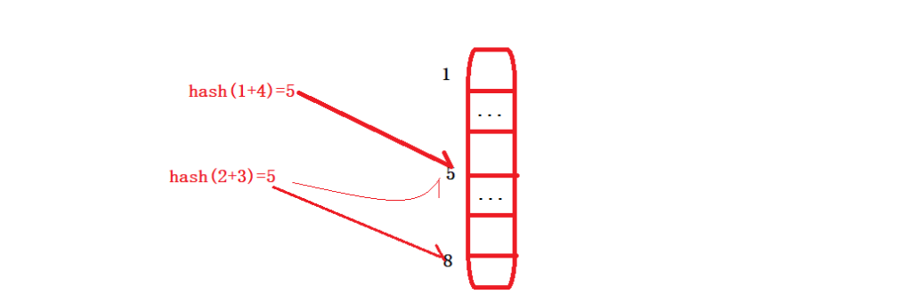 另外你还记得我们上一篇举的示例吗?hash(0+5)=5,hash(1+4)=5,hash(2+3)=5。假设当前目标数组下标是:5,那你也看到了,左右key:0+5,1+4,2+3并不相同,但是通过hash函数后,却都指向了数组下标:5的位置。这就是hash冲突的由来。