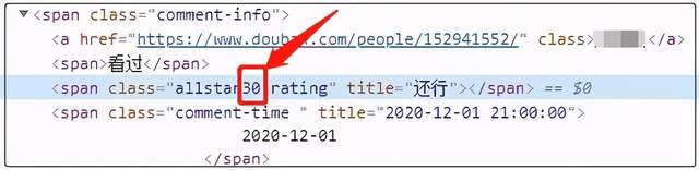 可以看到:3星的数字是30,其它的以此类推,1星的数字是10,2星的数字是20......我看着就是很不爽,因此我在爬取数据的时候,已经将这些数字,全都除以10后计算。