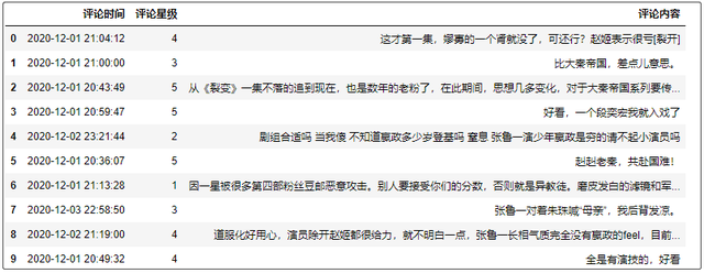 因为《大秦赋》是2020年12月1号开播的,现在是12月16号晚,因此所有的评论数据肯定都是2020年12月开始有的,因此我们只保留有用的“日期”数据(哪一天)。而对于时分秒来说,我们只保留“小时”数据。