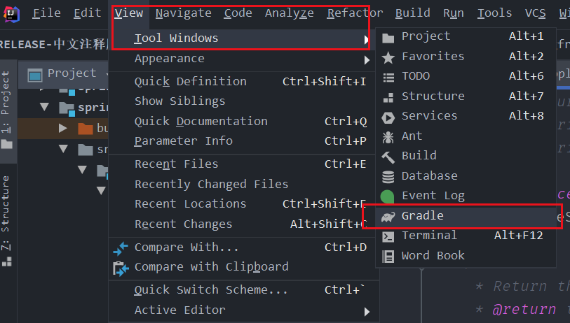 第一步:首先打开 View->Tool Windows -> Gradle