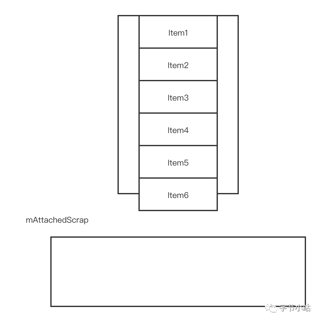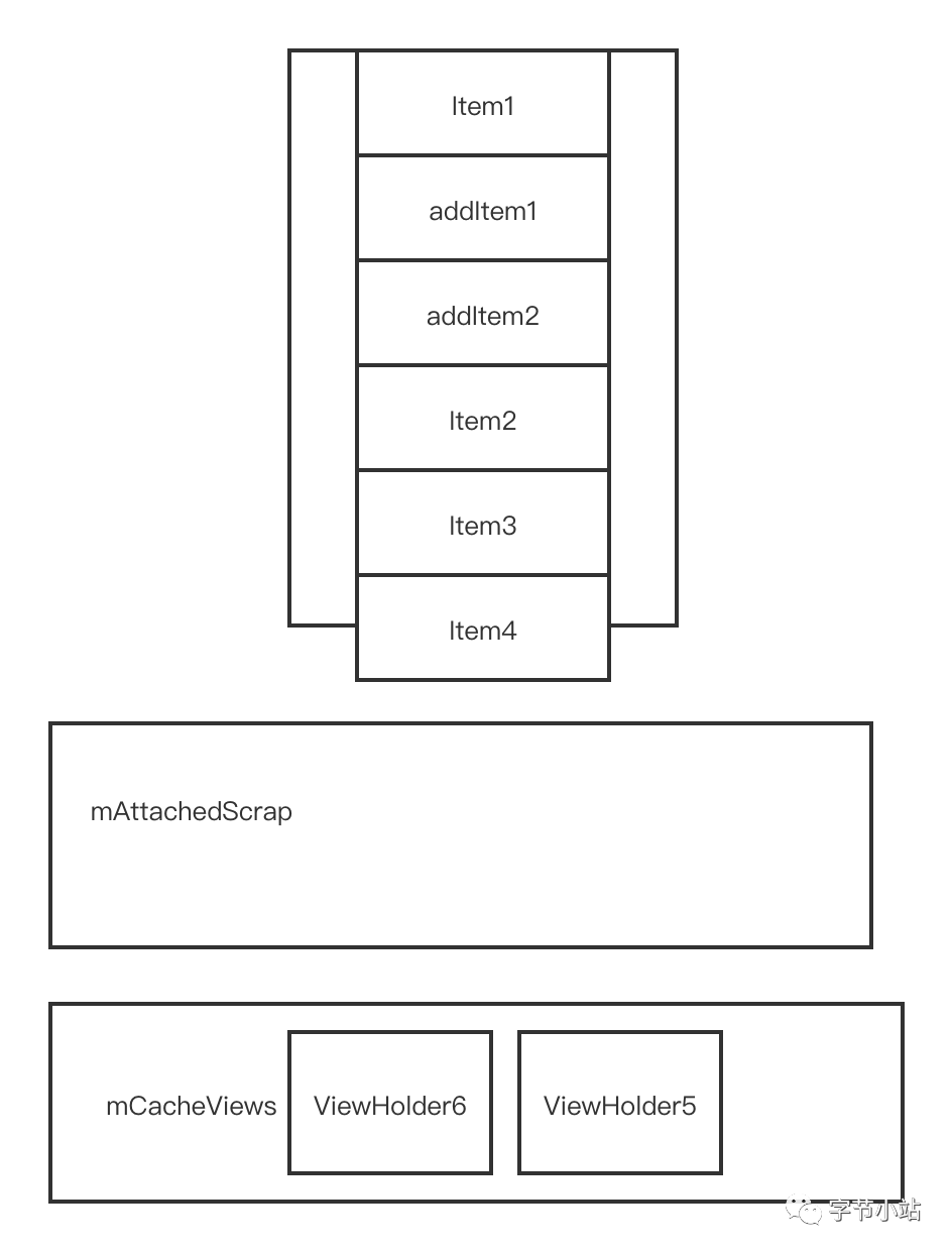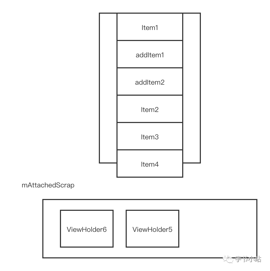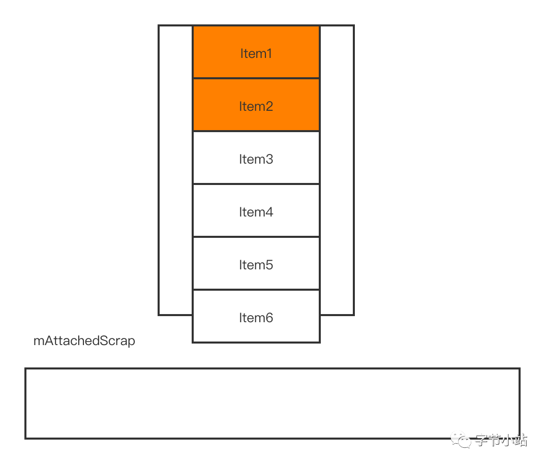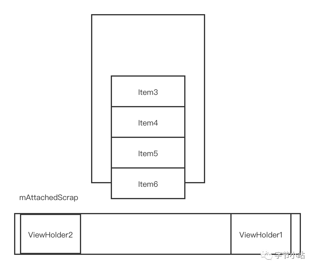 从锚点Item3处往下填充,mAttachedScrap只剩下ViewHolder2和ViewHolder1