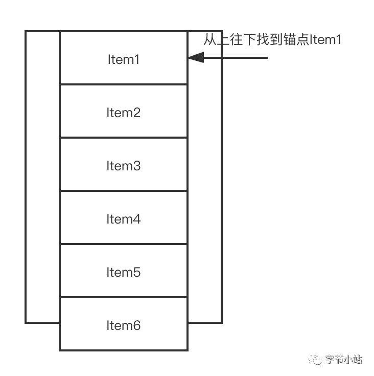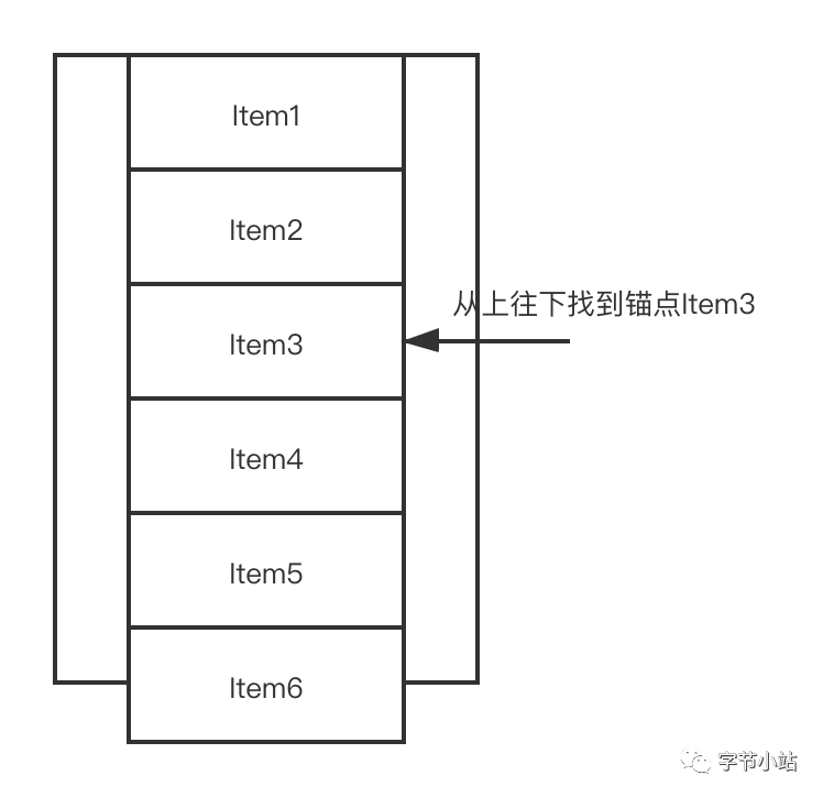 寻找填充的锚点,寻找锚点的逻辑是,从上往下,找到第一个非remove状态的Item。在本Case中,找到Item3