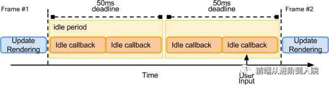 最长期限为 50 毫秒,是根据研究得出的,研究表明,人们通常认为 100 毫秒内对用户输入的响应是瞬时的。将闲置截止期限设置为 50ms 意味着即使在闲置任务开始后立即发生用户输入,浏览器仍然有剩余的 50ms 可以在其中响应用户输入而不会产生用户可察觉的滞后。