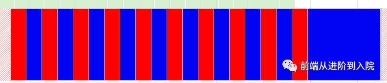 这里由于颜色变化太快,gif 录制软件没办法截出这么高帧率的颜色变换,所以各位可以放到浏览器中自己执行一下试试,我这边直接抛结论,浏览器会非常规律的把这 10 组也就是 20 次颜色变化绘制出来,可以看下 performance 面板记录的表现: