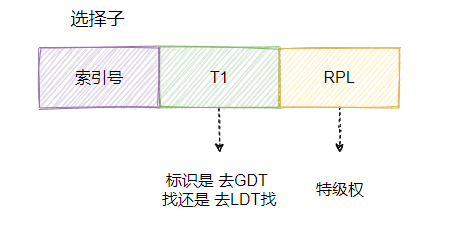 段寄存器里面也不是直接放段基地址了,而是放了一个叫选择子的东西。