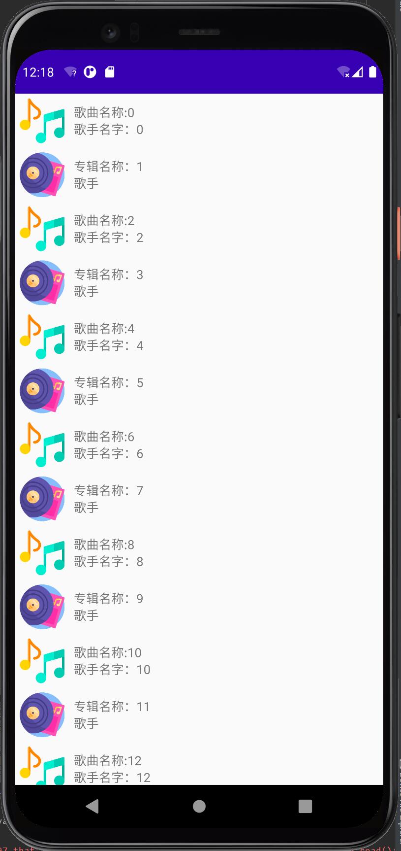 class SongActivity : AppCompatActivity() { private lateinit var recyclerView: RecyclerView override fun onCreate(savedInstanceState: Bundle?) { super.onCreate(savedInstanceState) setContentView(R.layout.activity_main) recyclerView = findViewById(R.id.recyclerView) //设置数据 recyclerView.models = getModels() } fun getModels(): List<Model> { var models = mutableListOf<SongModel>() for (index in 1..1000) { models.add(SongModel(R.drawable.music,"歌曲名称:$index","歌手名字:$index")) } return models } }